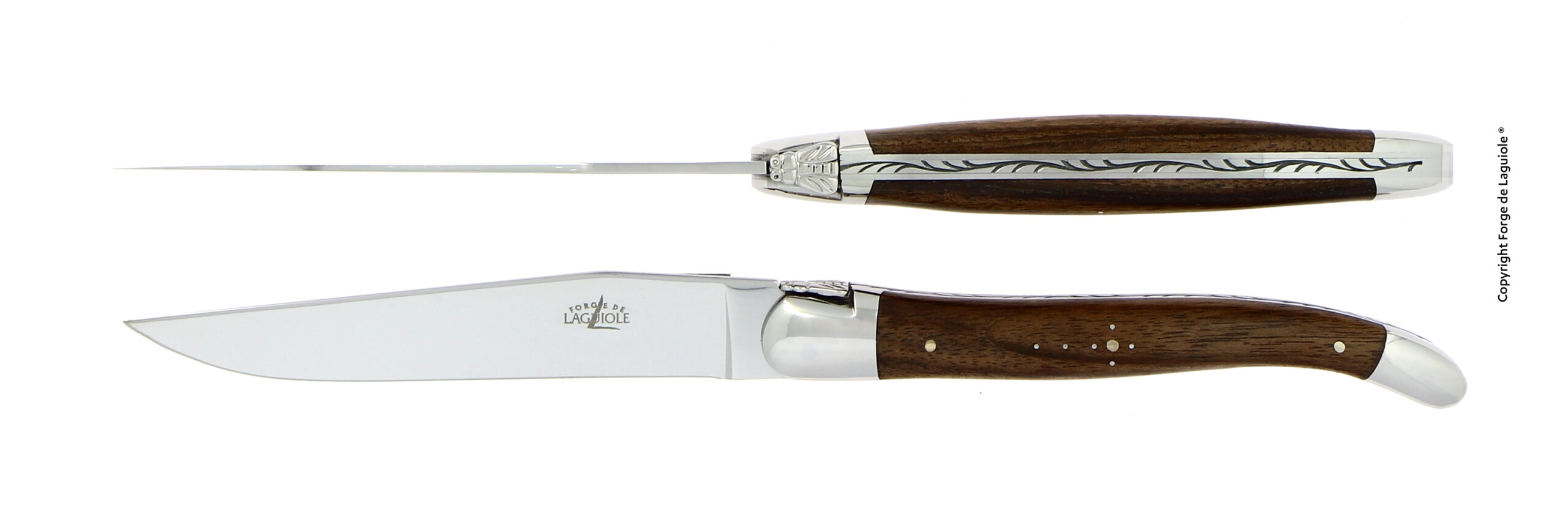 The set of 2 table knives (23.5 cm.) comes in a gift box, with a certificate of authenticity.