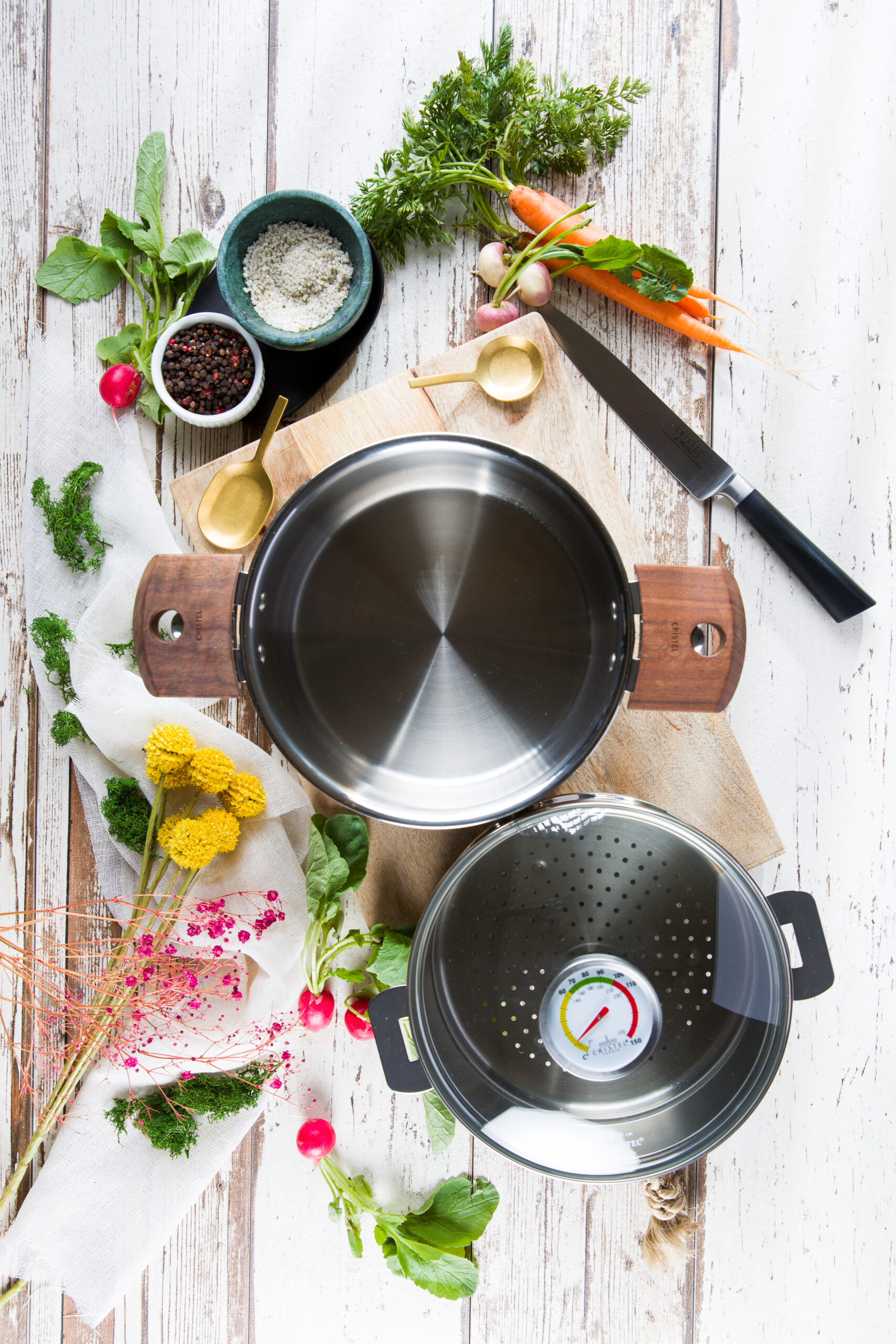 Biome is a cooker that combines three different cooking modes: gentle (below 90°C), steam (below 95°C) and a combination of the two. The thermometer combined with the ultra-resistant glass lid allows temperature control.