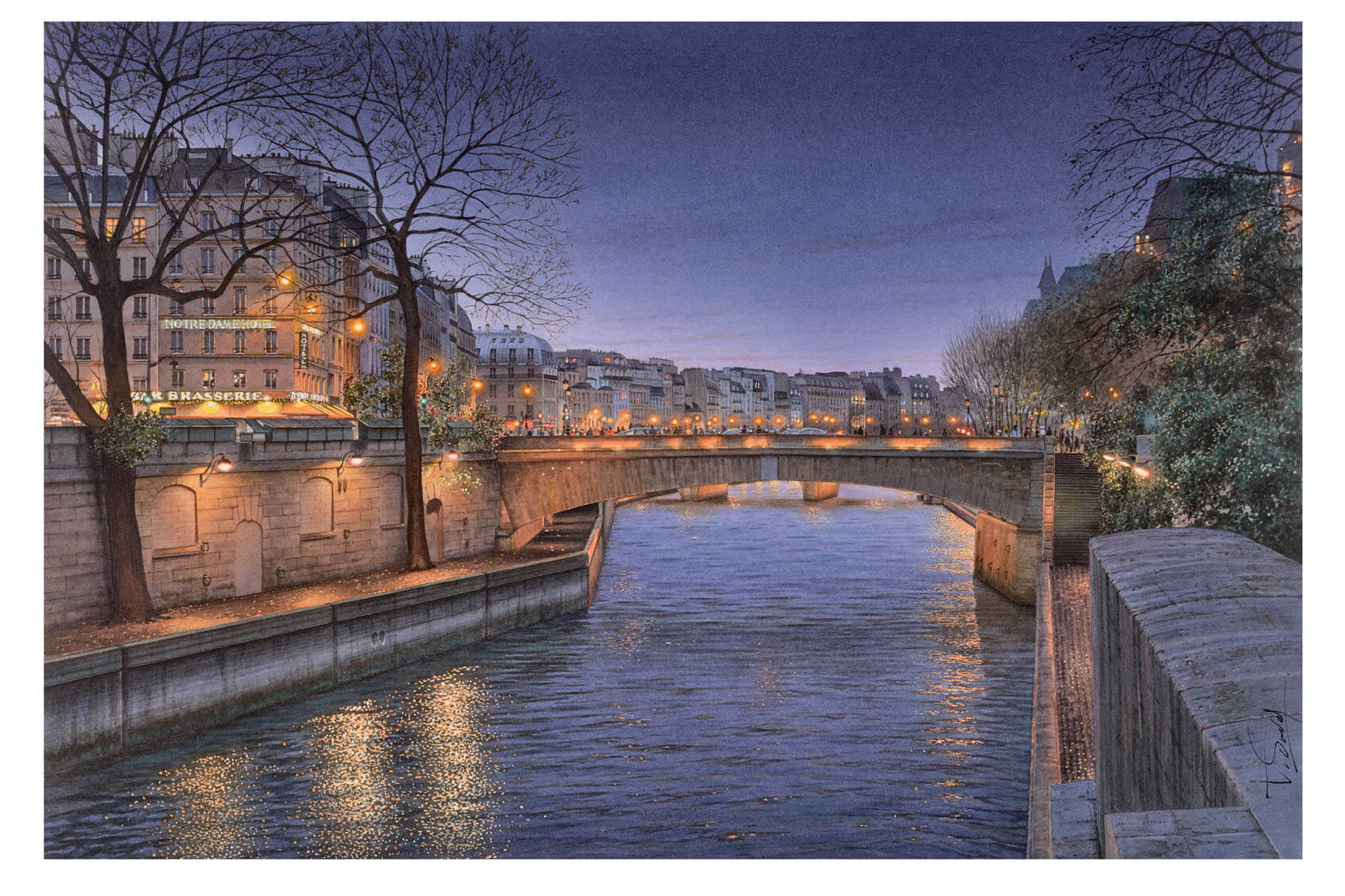 Parisian night on Petit Pont (Nuit parisienne sur le petit pont) art print