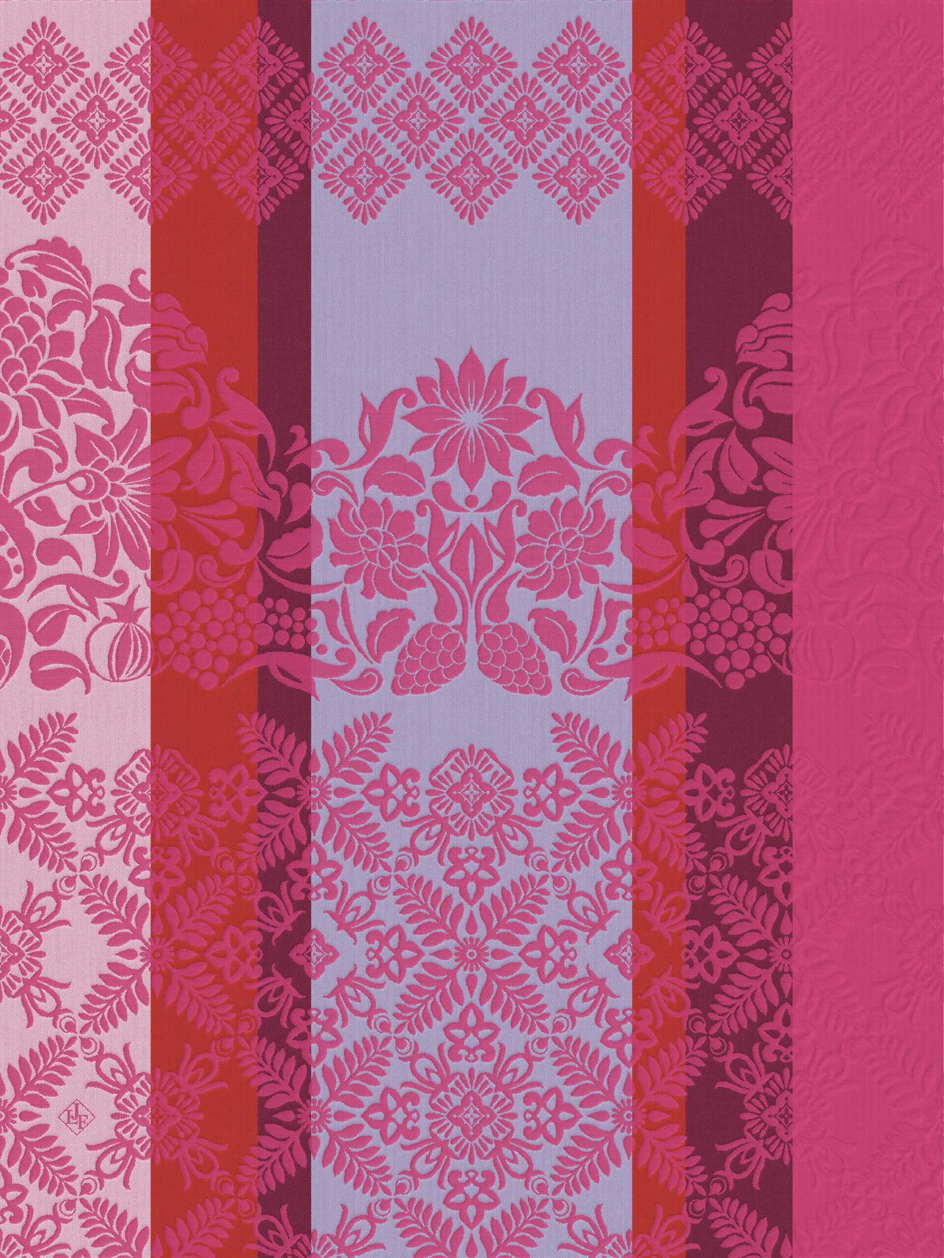 Vibrate to the rhythm of bold colors with the Mumbai collection from Le Jacquard Français. This season, let yourself be carried away in the heart of a reinvented India, where the ornaments of the palaces unfold infinitely. Gourmet and spicy tables come to life with motifs such as pomegranates, pineapples and lotus heart, intertwined with lush foliage. The Mumbai collection harmoniously combines traditions, shimmering and bewitching colors, offering a striking sample of elegance and spirituality.