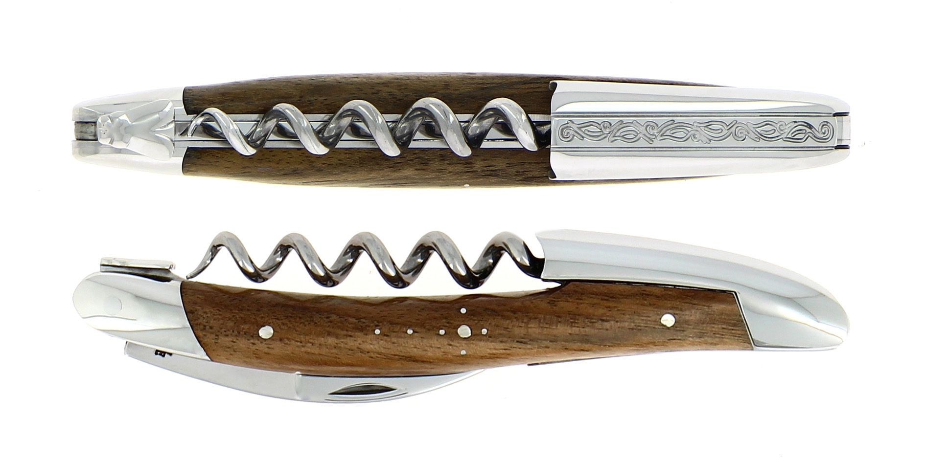 The Original Sommelier Knife by Forge de Laguiole was created in collaboration with professional sommeliers and thus gives it its ergonomics, elegance, and efficiency. The conical spiral, with 5 turns, of the corkscrew optimises its functionality, especially for the delicate corks of the finest vintage wines. The lever, whose operating principle is patented, is casted from heated metal and as a result is very resistant, hence can withstand intensive use.